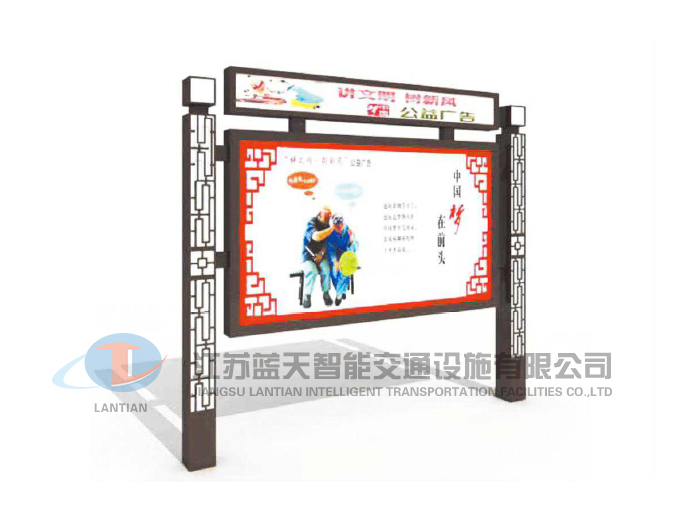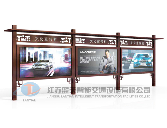 是一家生產(chǎn)宣傳欄,候車亭,公交站臺(tái),閱報(bào)欄,指路牌,廣告垃圾箱,滾動(dòng)換畫燈箱等系列產(chǎn)品廠家!產(chǎn)品多達(dá)上百種,亦可根據(jù)客戶的需求加工制作各種型號(hào)、規(guī)格的產(chǎn)品。目前已經(jīng)成功的向市場推出裝備有太陽能的各類產(chǎn)品,緊跟國家倡導(dǎo)“節(jié)能低碳”的環(huán)保政策。
